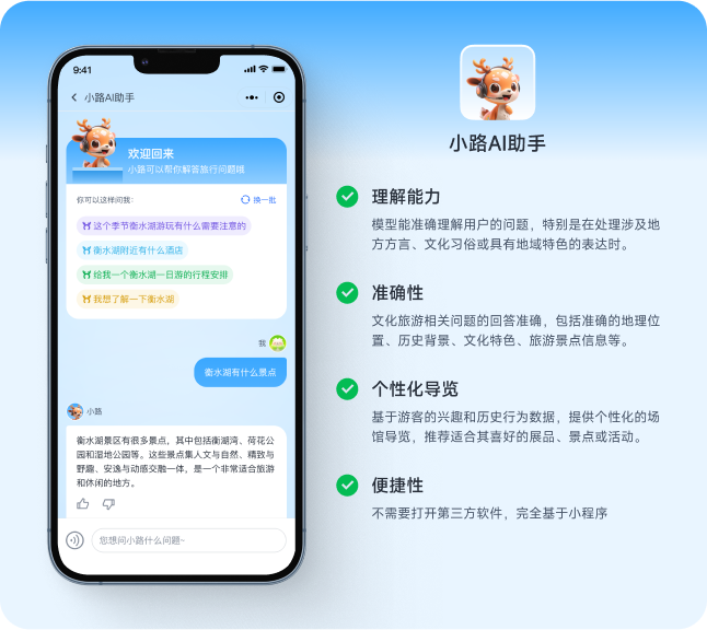 AI文旅行業模型是一款綜合性人工智能應用,旨在提升旅游體驗和優化內容創作?;诖竽P蜕墒街悄軉柎稹€性化伴游助手、行文助手(標題取名、文章潤色、文章摘要、關鍵詞提取)、圖像識別、文轉語音等。